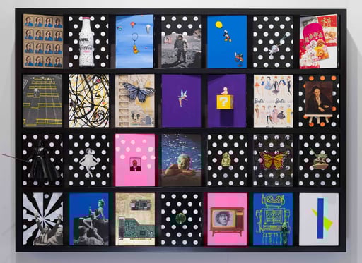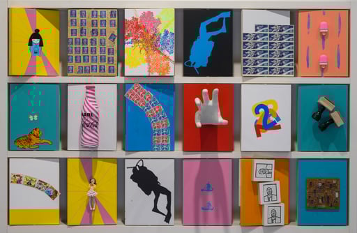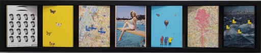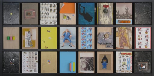 While placing these objects in an intimate new context, the Artist hopes viewers take time to appreciate the beauty of the materials, such as an intricate stamp or a once prized childhood toy.